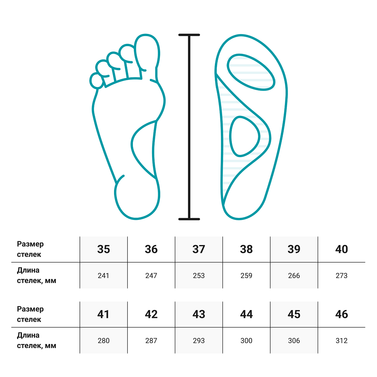 Покрытие стельки, изготовленное из микрофибры, обладает повышенной износостойкостью и легкостью в уходе и обеспечивает отличный воздухо- и влагообмен.